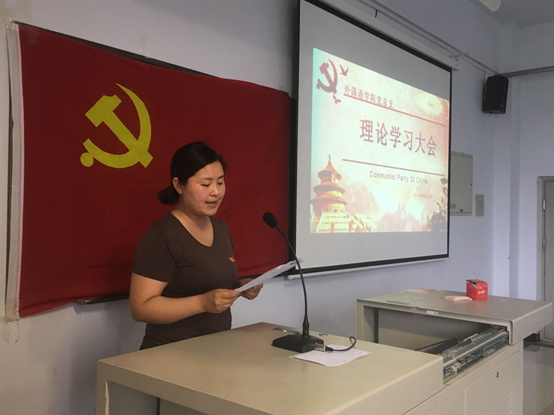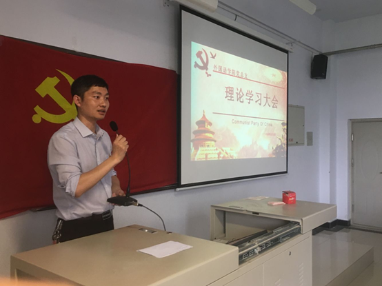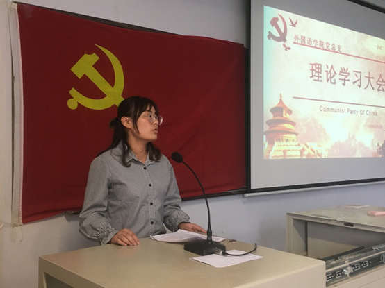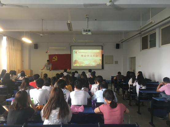 2019年5月15日下午15:00分在日新楼508教室,外国语学院党总支应学校党委统一部署,召开了理论学习大会。到场参会的有:河南师范大学新联学院党委组织统战部部长李淮嵩同志、外国语学院全体职工党员、学生党员以及入党积极分子代表,共93人(总支部共有党员73人,本次出席党员68人,因事因病请假5人;入党积极分子代表参加25人),整个大会过程在严肃、庄严的氛围下进行。