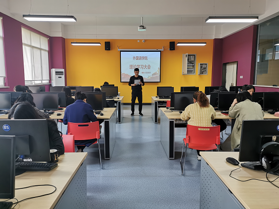 2019年10月24日下午,外国语学院召开了第五期理论学习大会。全院全体教职工均参加了此次理论学习。会议由外国语学院副院长、院党总支书记胡杰主持。