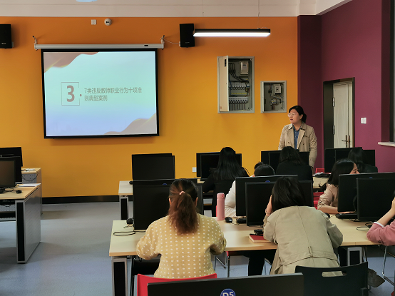最后,外国语学院副院长赵妤谈了谈本次理论学习大会主要内容的个人感想。教师的行为基于教师教育信仰和教育情操,由内而外展现,最终体现在教师的专业态度和教育教学行为上。从教师行为的特征来看,示范性贯穿教师教育人、培养人全过程,是教师行为的核心特征,能够产生潜移默化、深远持久的影响,体现着立德树人在行为规范层面的本质要求。教师行为是可塑的、动态的,也是需要规范的。教师的行为规范是衡量教师师德师风建设成效的标尺,也是高校精神、文化与价值观的反映。高校教育规范形成的过程,就是以现实中存在的瓶颈性问题为对照,通过针对性、规范性和引导性措施的制定和良性运转机制的确立,引导教师自觉履行岗位职责,并促使教师完成从遵守规范到自觉提升的过程性转变,督促并鼓励教师在工作中将职业道德理论转化为实际行动,努力做到思想与行为相一致。