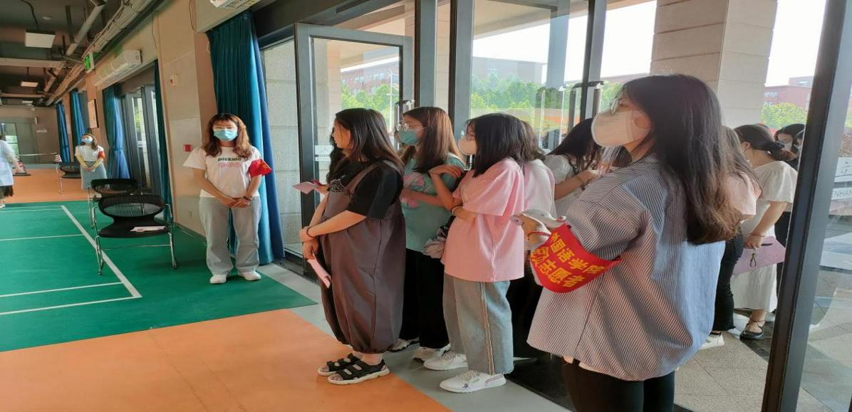 当下,新冠疫苗接种工作在校园内正有序推进。5月18日上午,外国语学院首批学生在我校健行馆内进行新冠疫苗接种。为保障本次接种工作有序开展,我院学生党员志愿者在现场积极配合医护人员,组织大家认真填写新冠疫苗知情同意书,安排学生有序入场。