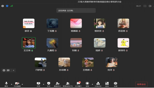 2022-2023学年第一学期已过半,回顾这一段的教学工作,每位参会教师都感触颇深。在此次教研活动中,每位老师就自己期中调查问卷里学生反馈的问题和建议进行分享,其中学生希望老师在课堂上多讲解四六级考试内容的诉求引起大家的共鸣,专家教师杨佩聪教授针对这个问题进行解答:学生注重英语学习及其实用性是好现象,但教育部并不提倡课堂主要讲解应试内容;不过,教师们在课堂上也可以适当融入四、六级的题型、做题技巧和重点词汇,等等;另外,也建议院系开设应试类选修课。此外,参会教师还提出其他问题,包括但不限于:上课节奏快慢问题、课堂进度、小组展示、高考非英语生如何学习、教师如何增加课堂互动……老师们相互探讨,郭芬老师也结合自己的经验解答困惑。最后,老师们一致赞同,要鼓励学生合理规划课外时间,多学多练,夯实英语基础。会议最后,郭芬老师总结到,我们要始终以学生为中心,关注学生提出来问题和诉求,并及时解答,持续提升自身的教学水平,进而推进我校大学英语课程建设。