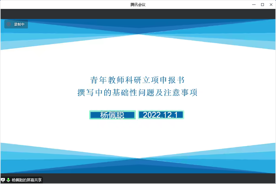 12月1日下午,外国语学院专家教师、大学英语教学管理及教学改革负责人、省级项目主持人杨佩聪副教授受邀开展关于“中原科技学院外国语学院科研能力提升”系列讲座之“新入职青年教师科研立项申报书注意事项”。本次讲座在腾讯会议举办,院长助理刘华主持,外国语学院全体教师以线上的形式聆听了此次讲座。