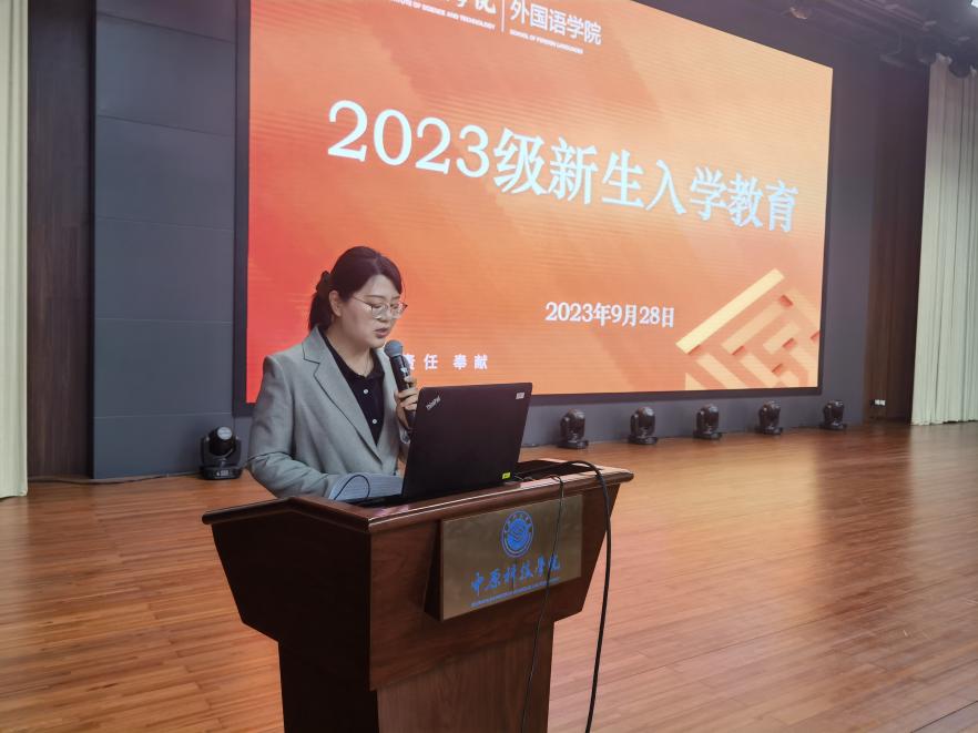 接下来,院长助理李莉为新生们介绍了外国语学院“书香外院·中外悦读计划”活动。她指出,阅读是提升语言能力和文化素养的重要途径。外国语学院书香外院阅读计划是以鼓励新生们多读书、读好书,培养良好的阅读习惯而开展的外语教学活动。