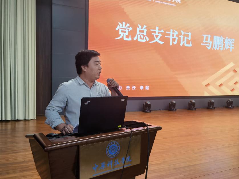 随后,党总支书记马鹏辉发表讲话。他强调了外国语学院作为一个具有光荣历史和优良传统的学院,一直以来秉持的价值观和文化传统。他希望新生们能够树立正确的世界观、人生观和价值观,积极投身社会实践和公益事业,锤炼品德修养,提升人格魅力。