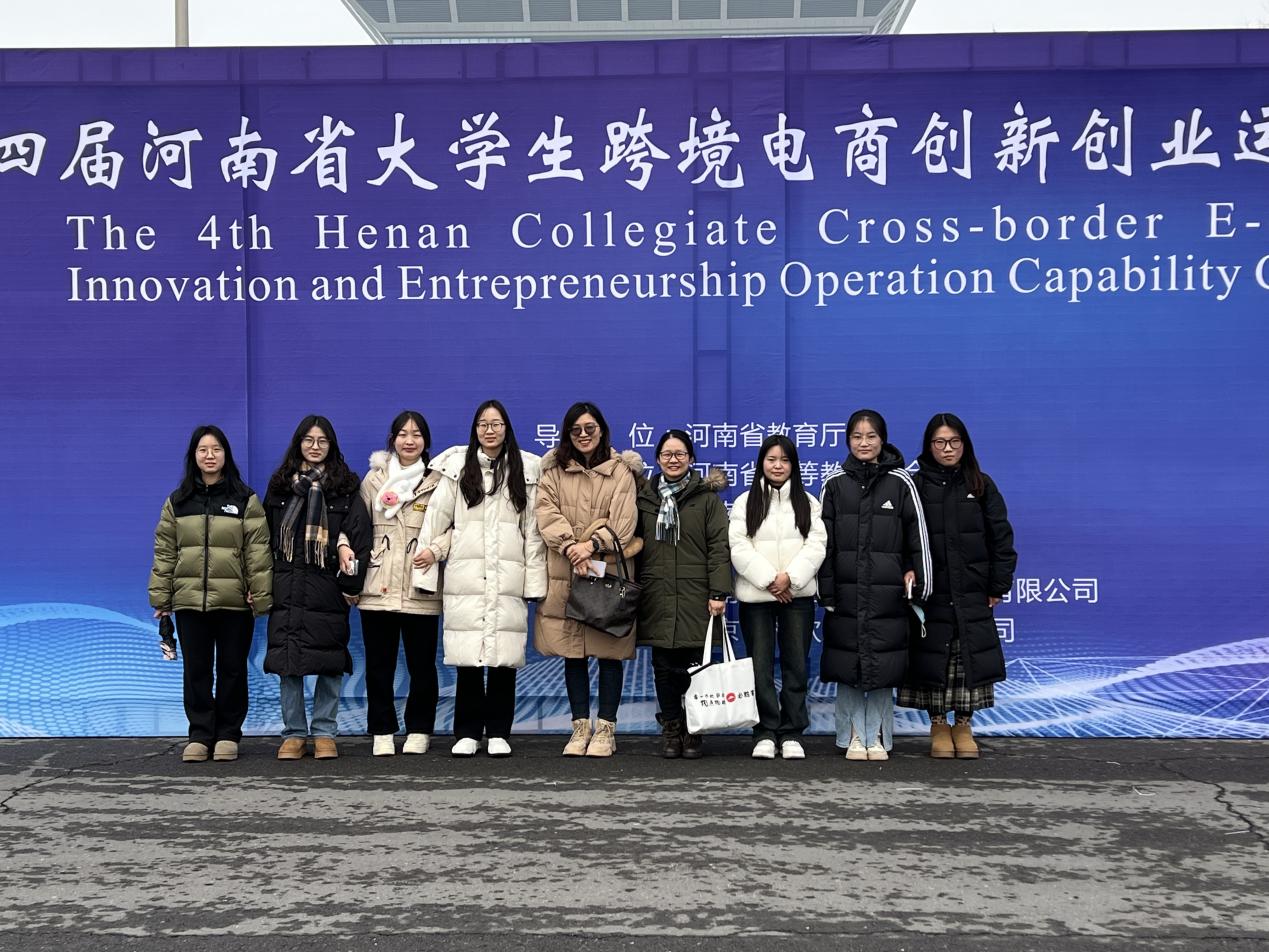 2023年12月30-31日,由河南省高等教育学会主办的“第四届河南省大学生跨境电商创新创业运营能力大赛”在河南财经政法大学举行。来自全省的50多支本专科队伍同台竞技,我校外国语学院商务英语教研室杨庆云和燕董娇两位老师带领商务英语专业崔毓琪、包梦瑶、韩金峰和秦海香4名学生组成的全场欢呼队获得团体二等奖的好成绩!