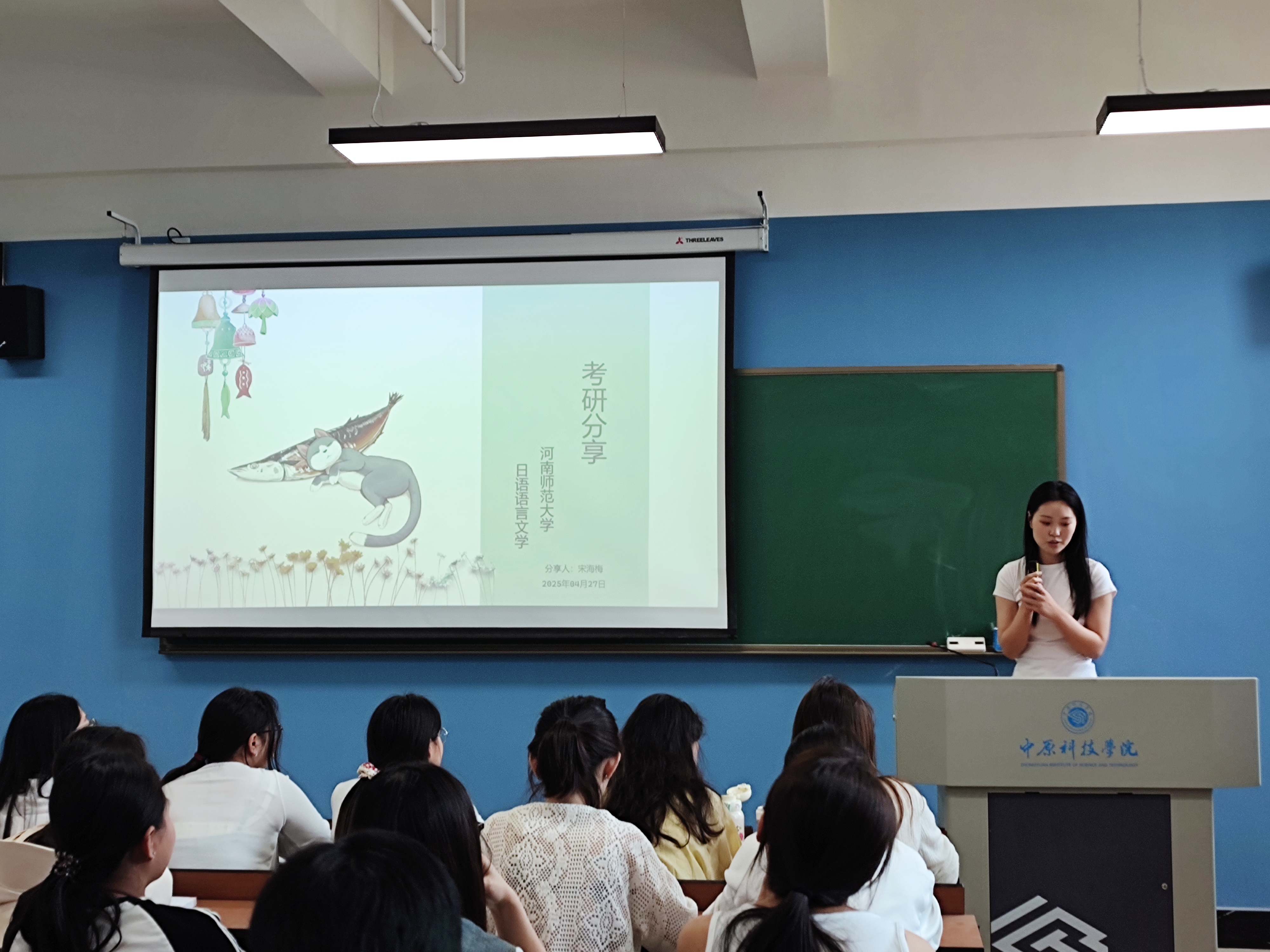 为帮助日语专业学子更好地了解考研形势,掌握考研技巧,明确备考方向,4月27日 ,一场精彩纷呈的考研经验分享会在行远楼S506举行。值得一提的是,2025届考研中日语专业共有11名同学成功上岸,其中日语语言文学、笔译等日语相关专业5人,跨考至思政、哲学、历史等学科6人,创下近年跨考成功率新高。日语专业2021级七位成功“上岸”的同学受邀出席,他们成功“上岸”不同的专业,包括日语语言文学和日语笔译专业以及跨专业的学科思政、马克思主义哲学、马克思主义理论、古代史等专业,为在场的学弟学妹们带来了一场干货满满的经验盛宴。日语教研室冯瑞敏、卢静、李海翔三位老师以及2022级日语专业全体学生参加了此次会议。