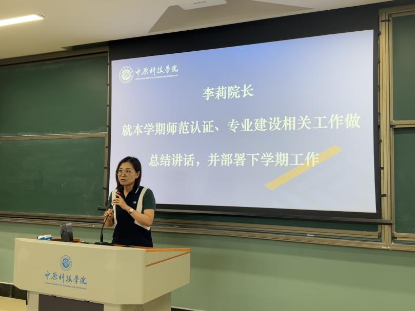 2025年7月4日,中原科技学院外国语学院在许昌校区召开2024-2025学年第二学期期末全体教职工大会,院部领导赵妤、李骁辰、李莉、刘华、郭芬、张宠以及全院教职工参会,旨在总结学期工作、部署后续任务,凝聚教职工力量。
