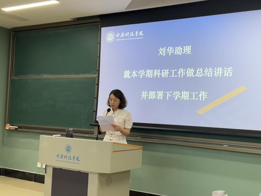 院长助理刘华带领大家系统回顾了本学期取得的科研成果,随后聚焦下一阶段工作,对科研项目的突破方向与各类平台的申报事宜作出了具体安排。