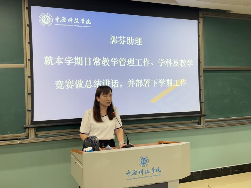 院长助理郭芬梳理了本学期教学与竞赛领域的各项成果,涵盖教学检查整改的落实情况及学科竞赛的获奖佳绩,并就暑期学科竞赛备赛规划与课程大纲修订工作作出安排。