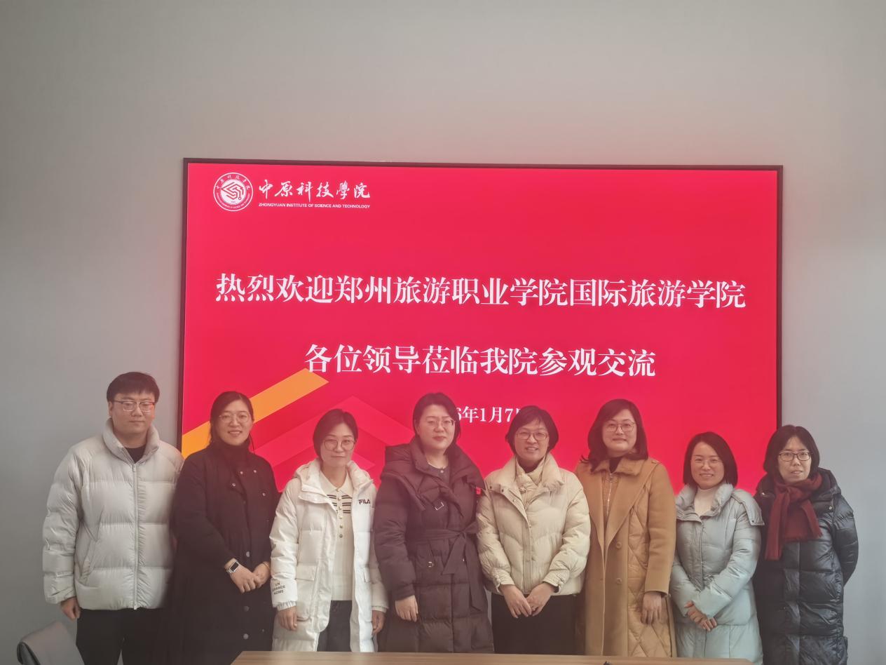 2026年1月7日,郑州旅游职业学院国际旅游学院院长刘瑞娜带领商务英语教研室主任王萍、旅游英语教研室主任景艳、教学科研办公室主任徐慧等同志,前往中原科技学院外国语学院进行学科建设交流工作。