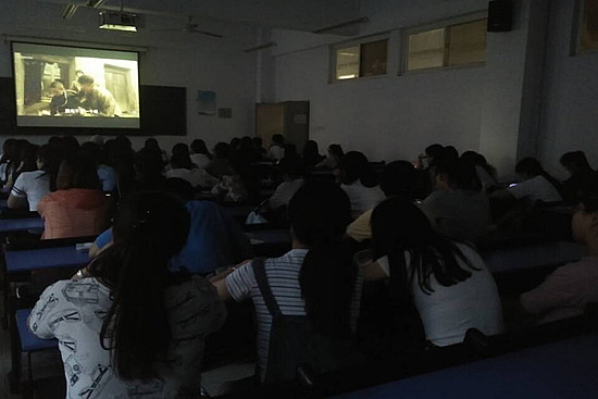 同学们在认真观看电影