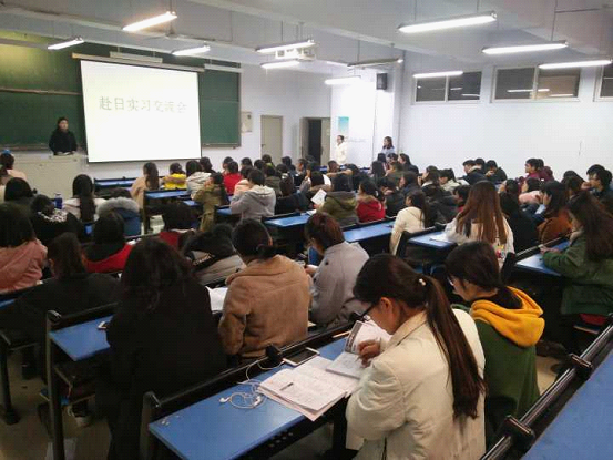 为了检验外国语学院海外教学实习基地的实际效果,掌握实习生的实习动态,更好地开展在校生的实践、实习工作,11月21日下午,外国语学院召开了赴日带薪实习回国学生代表经验交流会。我院外国语学院相关负责人、本次5名赴日实习生以及我院日语专业学生等参加了交流会。