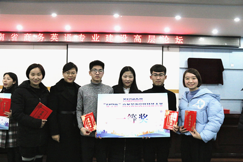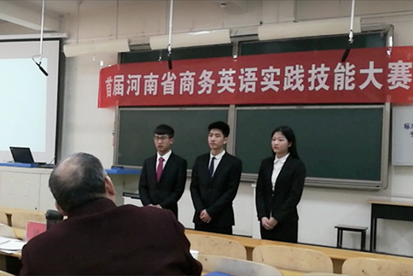 2017年12月1日-2日,由河南省外国语言文学教学指导委员会主办,河南科技大学外国语学院承办,首届河南省商务英语专业建设高层论坛暨商务英语实践技能大赛在洛阳举行。来自河南科技大学,河南农业大学,郑州航空工业管理学院,洛阳师范学院等高校的18支代表队参与了本次比赛。我院2015级商务英语(本科)专业杜冬立,刘毅冉,张璐三位学生组成的代表队,在学院青年骨干教师尚静雅的带领下,在此次商务英语技能大赛中表现优异,荣获一等奖。