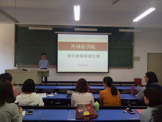 4月20日,外国语学院青年教师讲课比赛在日新楼405教室举行。比赛分为英语组和日语组,院长赵妤,各教研室主任郝菲、刘华、王芳、李景瑞以及往届校级青年教师讲课比赛特等奖获得者聂建厚担任评委。卢静、颜龙龙、王婷婷、张妍、高娅等12位老师参与比赛。