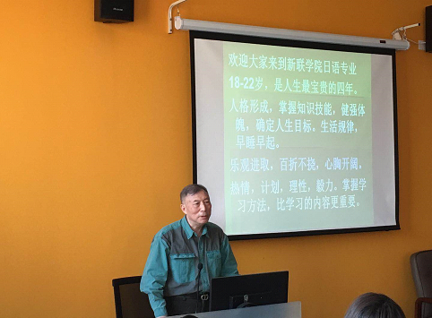 见面会在副院长赵妤的欢迎致辞中拉开帷幕,赵院长首先介绍了新联学院外国语学院学科适用性强、师资力量雄厚、毕业前景光明等优势,同时也提出了对新生个人发展的期望。随后,刘德润教授和路庆凤教授作了名为迎新辞的演说,从亲身经历出发,结合当下日语学习的实际情况,温文尔雅,幽默风趣,教室中不时迸发出阵阵的笑声,整个见面会在一片欢声笑语中度过。