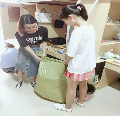 党员同志帮助学姐将物品打包