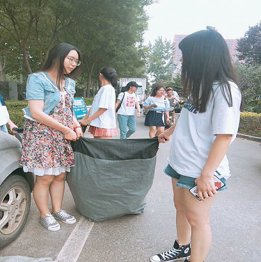 党员同志帮助学姐将物品送到邮寄点