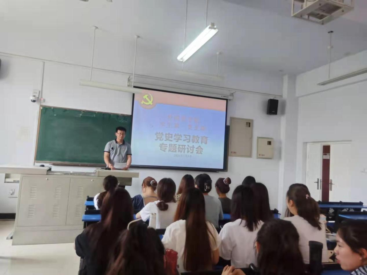 2021年5月8日外国语学院学生第一党支部在日新楼305举办了党史学习专题研讨会。党支部书记刘琦老师以及党支部内所有党员参加了本次研讨会,重点学习新民主主义革命时期历史、社会主义革命和建设时期历史。