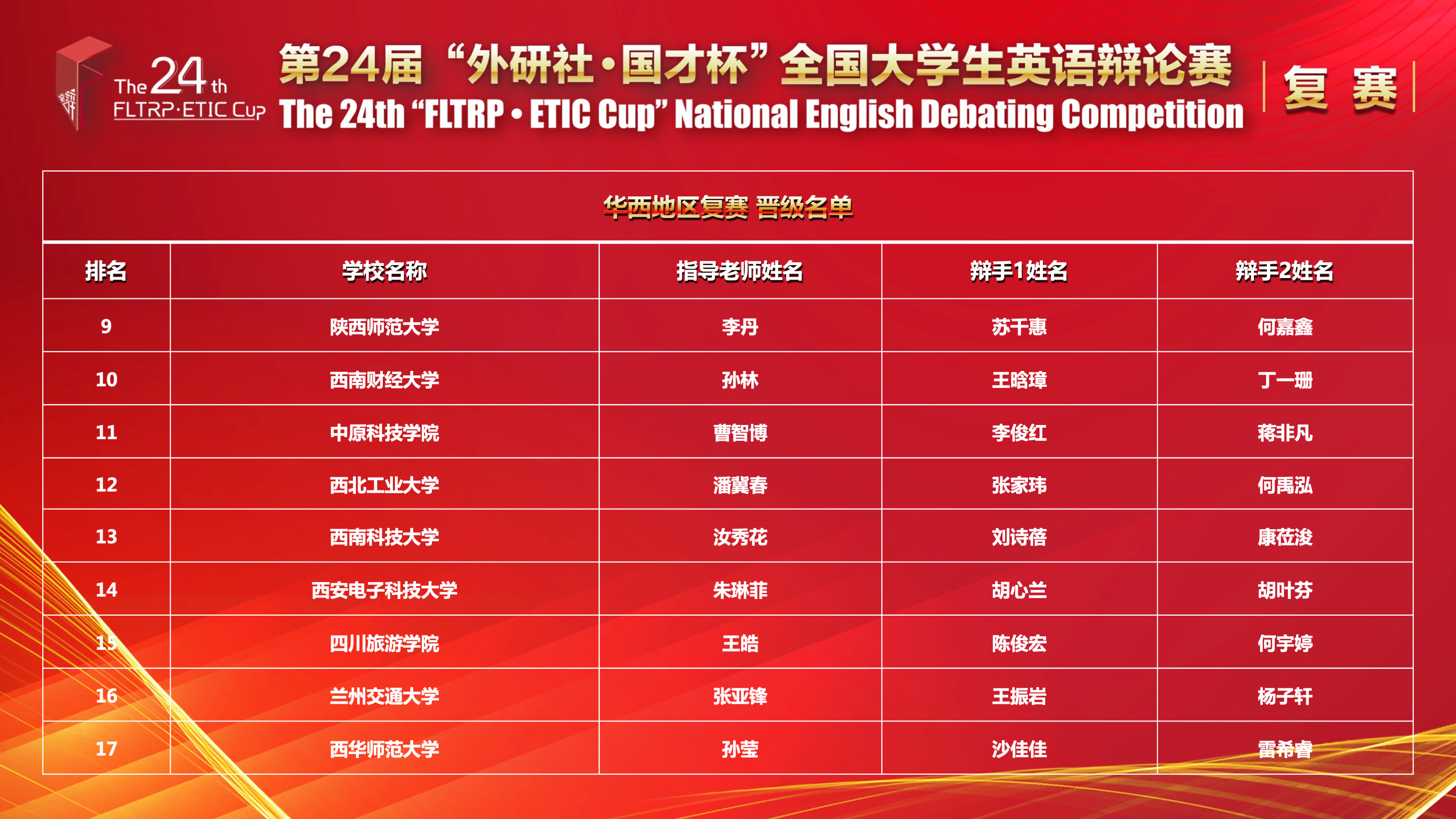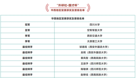 4月16-17日,第24届“外研社·国才杯”全国大学生英语辩论赛华西赛区复赛在腾讯会议线上进行。“外研社·国才杯”全国大学生英语辩论赛是由共青团中央、全国学联及北京外国语大学联合主办,是教育部认可的57项全国大学生学科竞赛之一,也是目前国内水平最高、规模最大的英语口语比赛之一。该比赛由校选赛、大区赛和全国决赛三个环节组成,我校所在的华西赛区包括了四川大学,空军军医大学,西安交通大学等知名高校,实力强劲。