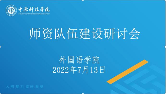 2022 年7月13日下午三点,外国语学院召开师资队伍建设线上研讨会,本次会议由外国语学院院长助理李莉主持。中原科技学院校长助理兼外国语学院副院长赵妤、院长助理刘华、英语语言学与文学教研室主任崔晓珂、商务英语与翻译教研室主任杨庆云、日语教研室主任冯瑞敏、外语学科教学教研室主任郭晓云以及西班牙语专业负责人高娅参加了此次会议。