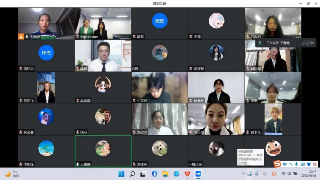 为提升我校学生的外语实践能力,搭建展示英语专业能力的平台,2022年10月18日晚,在英语语言学与文学教研室王现锐老师的主持下,中原科技学院第八届“梦想杯”外语演讲比赛决赛在线上成功举办,教研室主任崔晓珂、教研室教师王露、李庆钰、何梦丽担任大赛评委,反响热烈。