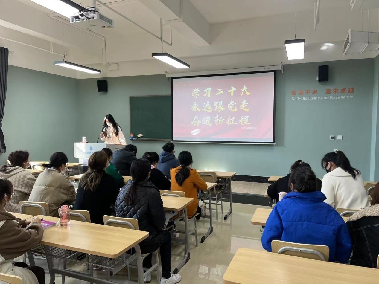 首先,团支书带领支部成员学习了“二十大”报告的部分内容,主要有:五年的工作和新时代十年的伟大变革;开辟马克思主义中国化时代化新境界;新时代新征程中国共产党的使命任务;加快构建新发展格局,着力推动高质量发展;实施科教兴国战略,强化现代化建设人才支撑;发展全过程人民民主,保障人民当家作主;坚持全面依法治国,推进法治中国建设;推进文化自信自强,铸就社会主义文化新辉煌;增进民生福祉,提高人民生活品质;推动绿色发展,促进人与自然和谐共生。