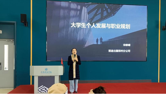 为加强学生职业生涯规划,拓宽学生发展路径,帮助学生了解境外留学的相关信息,3月2日下午,外国语学院邀请北京新东方前途出国咨询有限公司就业力&跨境部总监宋峥嵘老师作题为《大学生个人发展与职业规划》的专题讲座。外国语学院2022级英语专业、商务英语专业、西班牙语专业近200名学生在许昌校区立业楼S100聆听了此次讲座。
