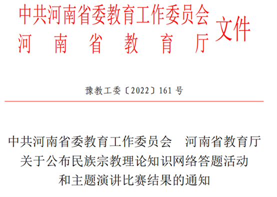 喜报!我院6名学生在“河南省第十届大学生中国特色社会主义民族宗教理论知识网络答题活动”获奖