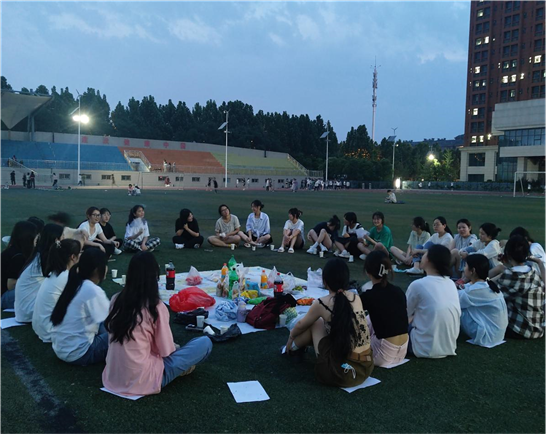 傍晚时分,同学们兴致勃勃地拎着准备好的食物与饮料来到操场,在欢快的歌声中开始了今天的团建活动。