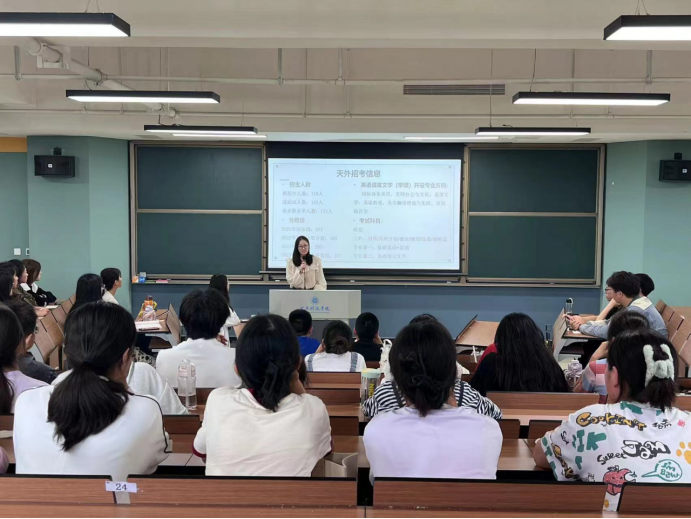 为进一步推进外国语学院学风建设,提高大一学生的考研热情,增强学生考研信心,明确学生考研目标以及更好的帮助许昌校区大一学生解决学习和生活中遇到的各种问题,5月30日我院特举办23届考研学子和优秀毕业生代表赴许昌校区开展交流分享会。