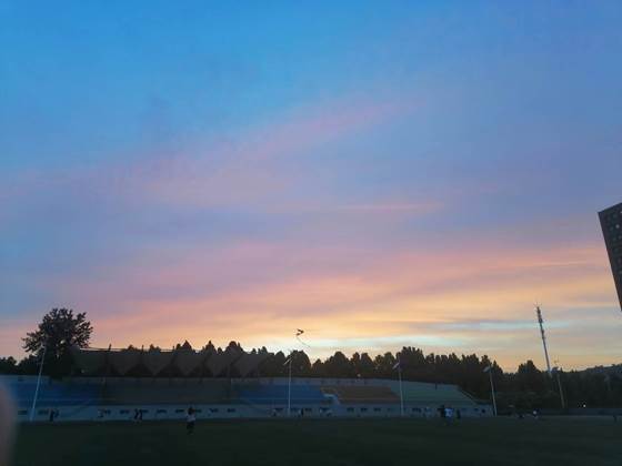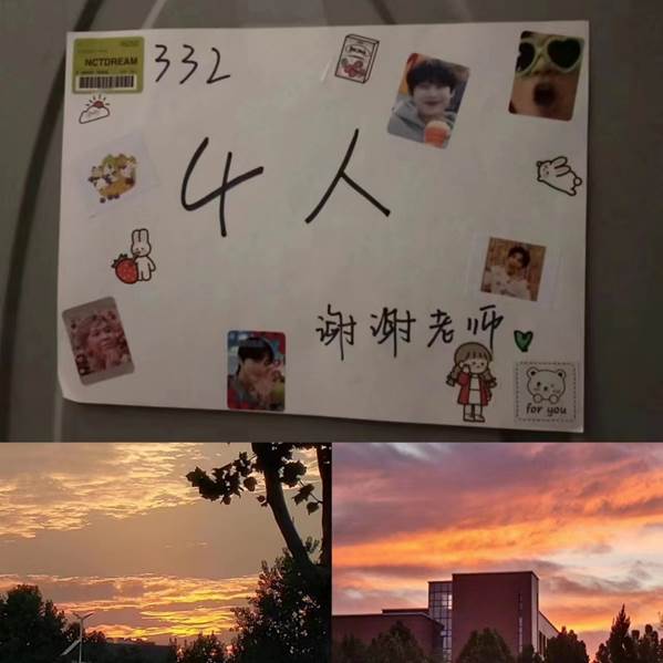 326宿舍:这张照片是2021年6月3日拍的。当时是晚上七点多,我和朋友吃完饭,一起出去散步,当时我们很开心,我们互相给彼此拍照以此来练习我们的拍照技巧,但拍了几张之后发现照片超级搞笑,就开始互相嘲笑哈哈哈!当时2021年正是大一无忧无虑的时光,当时看到天空美丽的的晚霞就想把它记录下来,就像记录我们的青春一样,我依然清楚的记得我手机拍出来的照片可模糊,根本拍不出来天空原本的美,但是没办法也只能拍成这样了,哈哈,就像我们的青春一样,总会留一点遗憾。