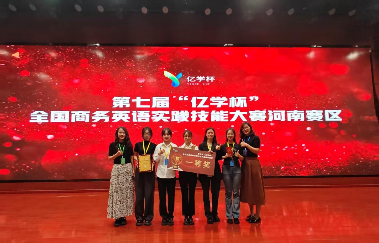 “亿学杯”全国商务英语实践技能大赛(河南赛区),由河南省教育厅、河南省高等教育学会主办、福建亿学教育科技集团有限公司协办,是一项商务英语专业有较大影响的全国赛事。比赛包括云平台竞赛及主题演讲两个竞赛环节,各占总成绩的50%,考核内容涵盖商务英语综合能力、跨文化知识、跨专业商务知识、国际贸易理论与实务、跨境电子商务等内容。