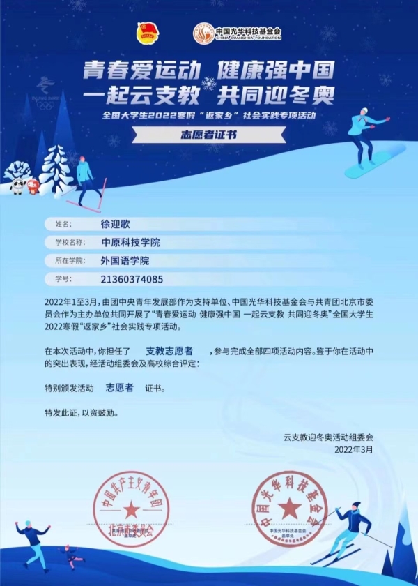 志愿者证书