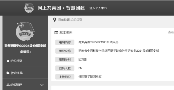 2021级商务英语专业一班团支部共有团员25名,均于大一提交入党申请书和入团申请书。现该部已推优10名,发展入党积极分子2名,中共预备党员2名。支部结构合理、工作扎实有效、团结一致,是一个充满活力的团体。在过去的工作中,该支部根据学校要求开展团日活动及其他活动30余次,政治功能突出,具有较强的组织力量。
