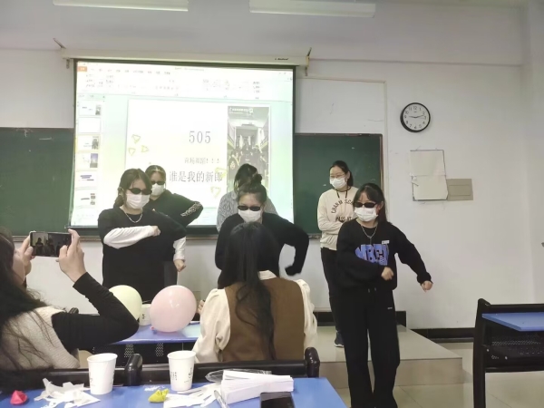 (图为班级团建歌会舞蹈活动)