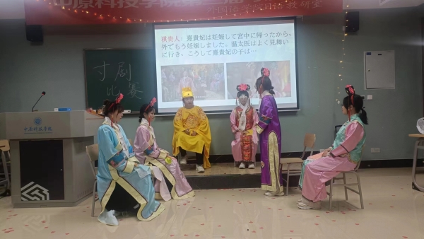本次比赛共有8组选手,参演人数多达70余人。本次比赛参赛的节目有中国经典剧目《昭君出塞》、《嫦娥奔月》、《牛郎织女》、《鸿门宴》,经典电视剧《甄嬛传》、《咱们结婚吧》,喜剧《是谁杀死了周日》以及日本传统剧目《竹取物语》。经过三个小时的激励角逐,从内容、语言表演、节目编排、现场效果四个维度进行综合考察,《甄嬛传》组以其跌宕起伏的故事情节、魅力十足的语言展现以及精彩绝伦的舞台表演,被评选为本次比赛的一等奖。