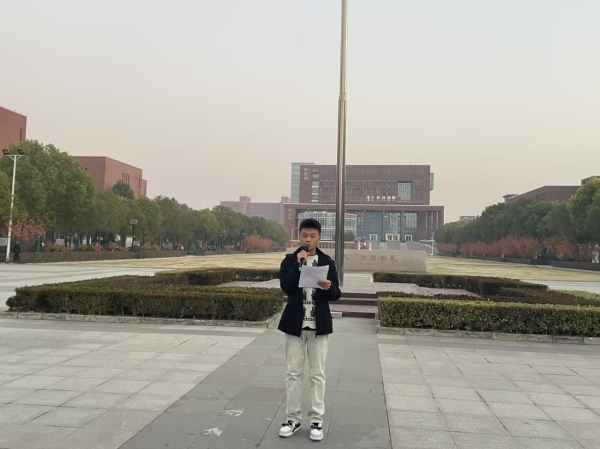 为激发学生的爱国热情和集体荣誉感,增强全体外院学子们的凝聚力和向心力,2023年11月20日早上7:00,外国语学院在南广场举行了本学期的第二次升国旗仪式。周一的清晨,当太阳射出第一道金色的光芒,当雄壮的国歌奏起第一个悦耳的音符,鲜红的五星红旗像一团炽热的火焰迎着朝阳,沐浴晨曦冉冉升起。升国旗仪式由外国语学院学生会主席李昊星主持,优秀学生代表2023级商务英语2班耿甲鑫同学发言,分享了他在学习中的经验和方法,最后外国语学院党总支书记马鹏辉老师做总结讲话。通过开展升国旗仪式,增强了外国语学院师生的民族自豪感和使命感,更加激励同学们为实现中华民族伟大复兴的中国梦接续奋斗。