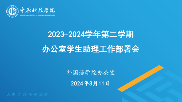 为提升外国语学院办公室学生助理队伍的工作能力和综合素质,进一步凝聚师生思想共识,促进学生助理成长进步,2024年3月11日中午,外国语学院在日新楼310召开了新学期办公室学生助理工作部署会。学院办公室全体工作人员及全体学生助理参会,会议由办公室主任任娇品主持。