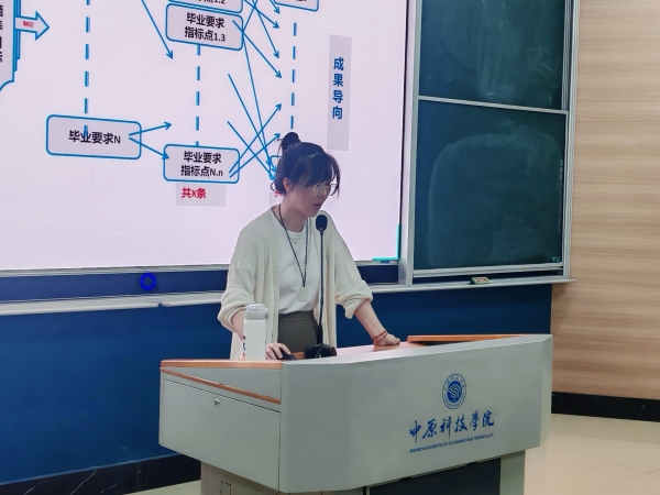 在培训会上,崔晓珂主任系统阐释了OBE理念的核心要义。她首先强调课程大纲制定必须与专业培养方案保持高度一致,指出大纲编制需要重点把握三个关键维度:一是课程目标与毕业要求的对应关系,二是课程内容对课程目标的支撑作用,三是考核方式与课程目标的匹配程度。这三个维度相互关联、相互支撑,共同构成课程大纲的科学体系。