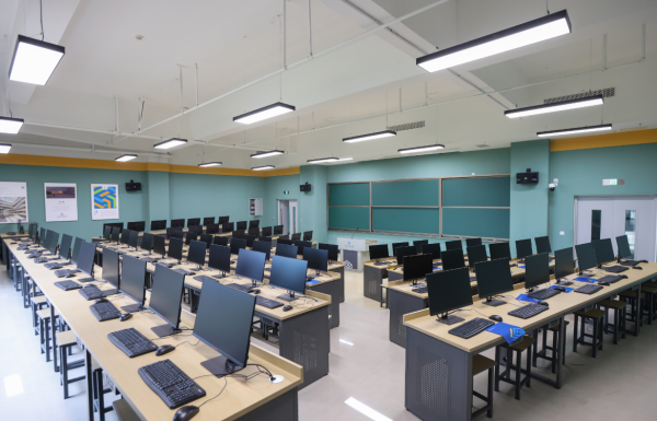 外国语学院目前有多间实训室:同声传译实训室、笔译实训室、读写实训室、语音听力实训室、商务英语实训室、新商汇外贸工作室、商务英语跨境电商虚拟仿真中心、商务英语国际贸易虚拟仿真中心、商务英语技能实训中心、微格教室、三笔字教室、精品录播室、虚拟演播室、普通话测试站等。