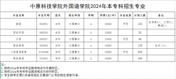 中原科技学院外国语学院2024年本专科报考指南