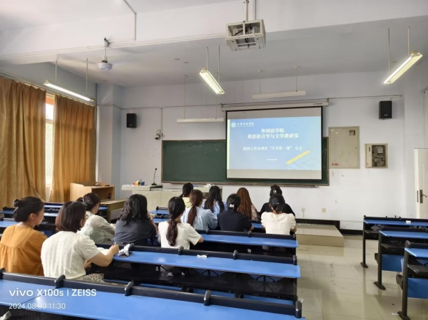 为深入贯彻党的二十大精神,大力弘扬践行教育家精神,顺利开展新学期教育教学工作,8月30日上午,外国语学院英语语言学与文学教研室举行期初教学工作安排会议,对新学期工作进行详细部署,并进行了“开学第一课”分享。会议由崔晓珂主任主持,英语语言学与文学教研室全体教师参与了此次会议。