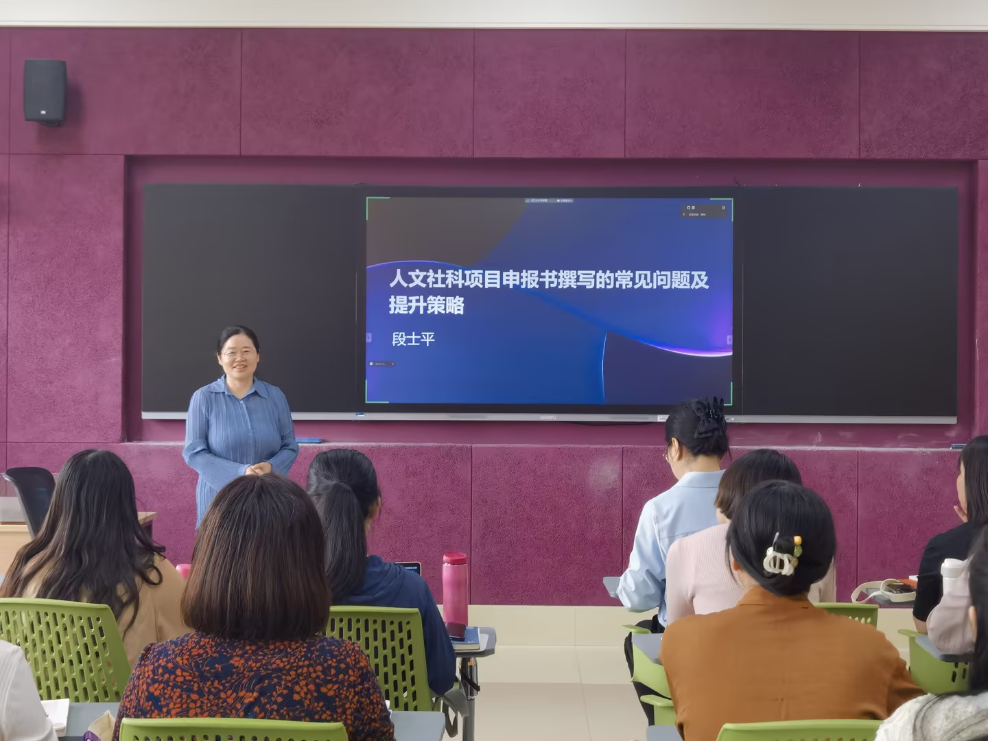 为进一步加强我院教师科研意识的培养,促进科研水平提升,夯实科研项目申报和研究工作基础,2024年9月26日下午,教育部职业教育国家级教学成果奖评审专家、河南省教育科学专家库、河南省哲学社科基础研究重大项目首席专家段士平教授,在我院开展“人文社科项目申报书撰写的常见问题及提升对策”学术讲座。本次讲座在郑州校区举办,外国语学院两校区全体专任教师共同参与学习。