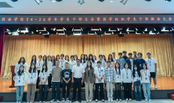 2024年10月10日,外国语学院(郑州校区)2024-2025学年第一学期学生干部大会暨团学组织换届大会在学术报告厅隆重举行。外国语学院党总支副书记张宠老师、团委副书记刘伟老师、学生第一党支部书记吴玉晓老师、学生第二党支部书记李佳老师,以及外国语学院团委、学生会全体成员、各班学生干部代表出席本次大会。