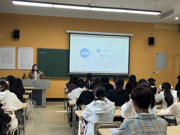 会议伊始,教研室主任杨欢欢发表了开场讲话,鼓励同学们畅所欲言,围绕本学期教学和英语学习问题开展讨论。学生代表们纷纷发言,普遍认为课程内容丰富且实用,极大地拓宽了同学们的视野。任课教师认真负责,合理运用多媒体手段,为英语学习增添了趣味。然而,学生代表们也提出了一些有待改进的问题,比如:英语听力训练的难度较高、英语学习资源不足等。杨欢欢老师对同学们的反馈表示感谢,并针对大家关心的问题进行了初步回应。她表示会与其他授课教师一起商讨,在后续的教学过程中合理调整听力训练的难度,并为同学们整理和推荐更多优质的课后拓展资源,满足大家的学习需求。另外,个别同学想了解英语四级考试是否会对毕业产生影响、四级考试时间及备考安排等。针对这些问题,外国语学院院长助理郭芬进行了详细解释,明确四级考试安排在大二下学期进行,虽然能否通过四六级考试不会影响同学们正常毕业,但还是建议大家积极备考,利用课堂资源和课余时间,养成良好的学习习惯,在为考试奠定扎实基础的同时,提升自己各方面的英语水平。最后,杨欢欢老师通过班委向2024级非英语专业本科学生发放了调查问卷,就“对授课老师的满意程度、授课难易程度、教师讲解效果、对课程和授课老师的建议”等问题进行了全方面调研,问卷共计回收2969份。