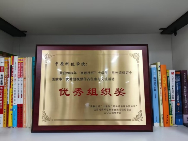 中原科技学院外国语学院因在此次赛事中的优秀组织表现,被主办方特别颁发了优秀组织奖。这一荣誉不仅是对学院师生辛勤付出的肯定,更是对学院在外语教育和实践能力培养方面所取得成就的认可。