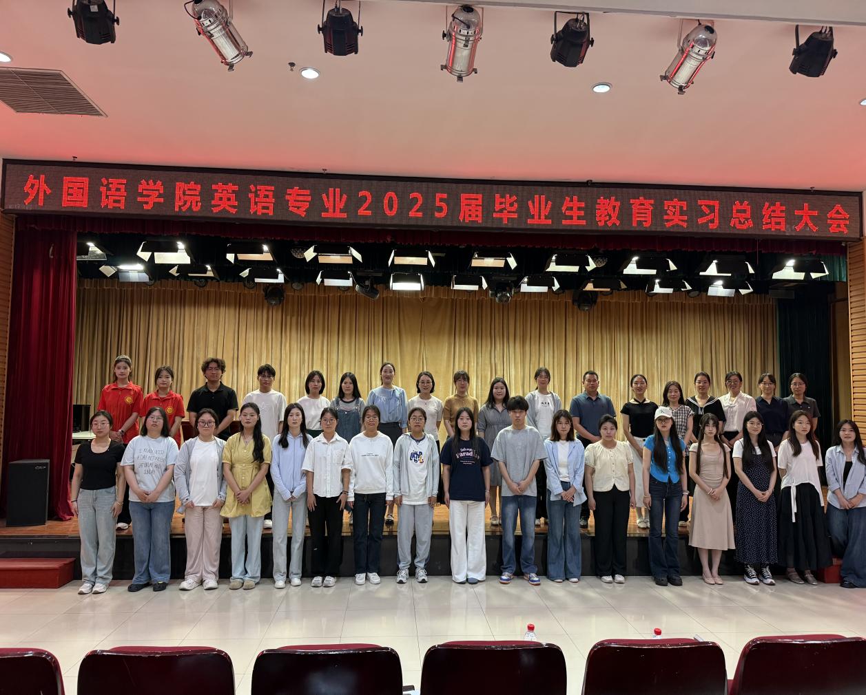 为表彰优秀实习生的突出表现,总结教育实习成果,外国语学院英语专业于5月27日上午在学术报告厅隆重举行2025届毕业生教育实习总结大会。受邀参加本次大会的英语专业校外实习基地代表有中牟县官渡镇中心学校校长秦科军、中牟县官渡镇中心学校教师张丹、郑东新区美秀初级中学教师乔静、郑东新区白沙中学教师张志兰,外国语学院英语教研室主任崔晓珂、外语学科教学教研室主任闫瑞琼、商务英语教研室主任杨庆云、日语教研室主任冯瑞敏、英语教研室副主任王晓庆、外国语学院2021级英语专业辅导员陈莹、校内优秀指导教师、部分校外导师及合作基地中学教师、全体25届英语专业毕业生及部分学生代表参加了此次会议。