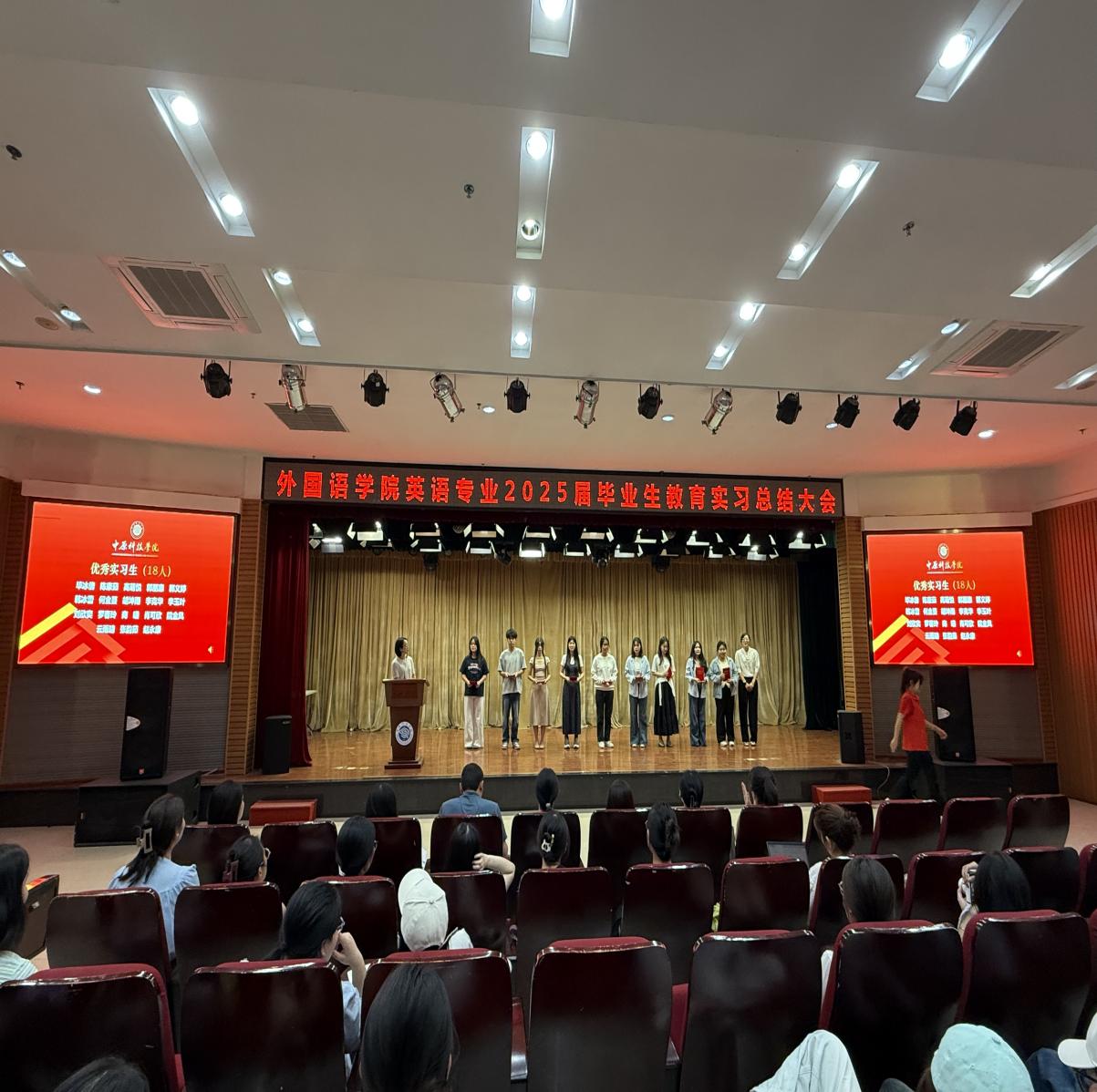 随后,会上为“优秀实习生”和“校内外优秀指导老师”颁发荣誉证书。校外指导教师乔静老师分享了本次带队实习的感悟,称赞实习生们“责任心强、专业扎实”,尤其在课程设计、课堂管理和学生互动方面展现了英语师范生的良好素养。