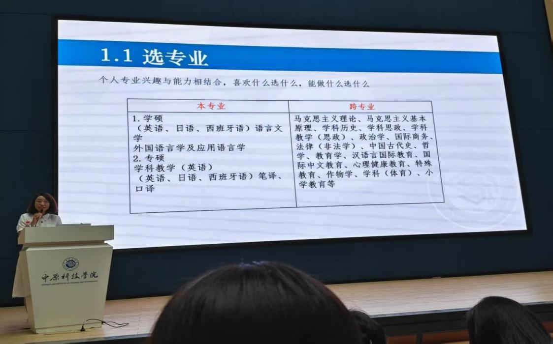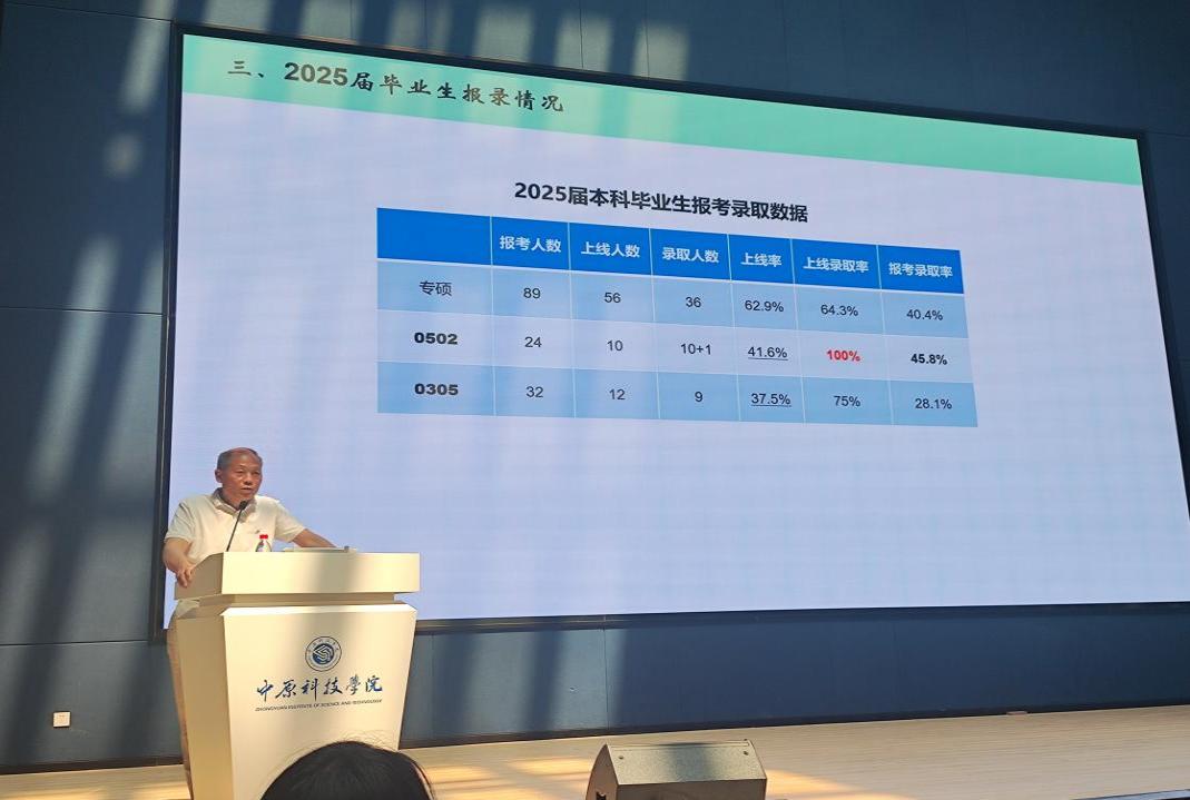 蟾宫折桂需趁早,策马扬鞭正当时。5月29日,中原科技学院外国语学院于自强报告厅举行26届学生考研动员大会。中原科技学院学生能力提升中心吴长增主任、外国语学院副院长赵妤、院长助理刘华、教研室主任赵欣等领导和考研指导教师,以及22级本科生齐聚一堂,以智慧为灯,以经验为帆,为莘莘学子点亮考研征途。
