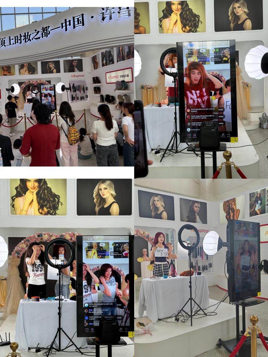 学生在许昌广电大厦跨境直播基地进行跨境直播实操